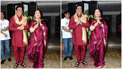 Ganesh Chaturthi 2015: Govinda and Ssunita Ahuja shut down divorce rumors with joint festive appearance in twinning outfits; latter asks paps, ‘Controversy sun ne aaye ho?’ | Hindi Movie News