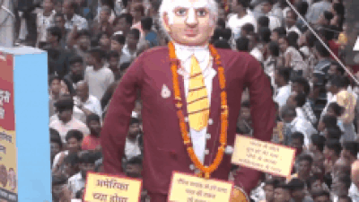 Watch: Giant Donald Trump effigy paraded at Nagpur festival; protesters oppose US tariffs on India | India News